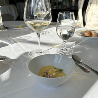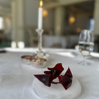 Jan Restorff briefly explained the technique of crating this dish, it left us speechless. Ice cold green tea is poured over those colourful balls and you're ready to continue 😇